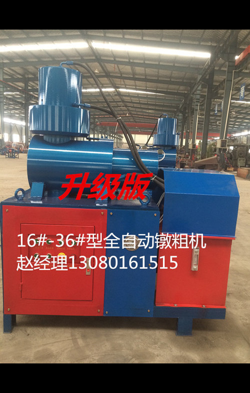 根据工程项目需求我公司新推出特质加强型钢筋镦粗机,可将螺纹钢筋接头加粗长度40-80mm,厚度为4-7mm的特制钢筋镦粗机,该设备卡具墩头全有特殊材料做成,强度硬度高,使用寿命长,大流量大功率真正解决了客户的难题。