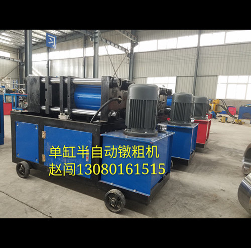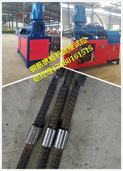 根据工程项目需求我公司新推出特质加强型钢筋镦粗机,可将螺纹钢筋接头加粗长度40-80mm,厚度为4-7mm的特制钢筋镦粗机,该设备卡具墩头全有特殊材料做成,强度硬度高,使用寿命长,大流量大功率真正解决了客户的难题。