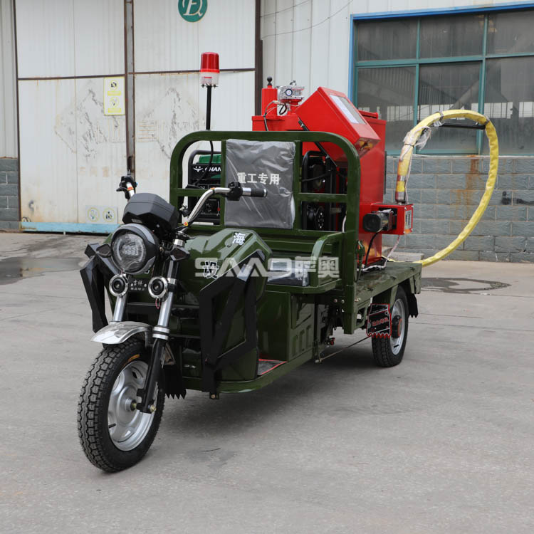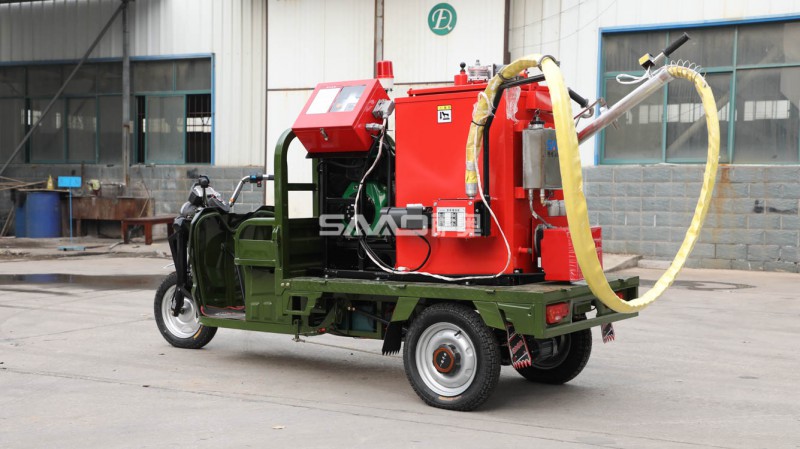 这款自行走式的沥青灌缝机施工更加方便,搭配的电动底盘是重载专用底盘,配置高低速爬坡档,加大水电瓶,动力充足,续航里程远。两人即可完成施工,每天施工在2500-3000延米左右。