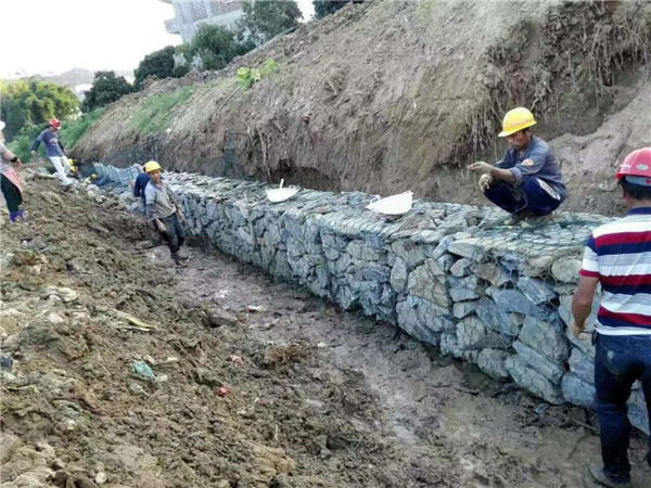 五拧格宾网护坡施工 镀高尔凡格宾网箱镀高尔凡格宾网产品用处广泛:格宾网用于江河、堤堰及海塘的防治冲刷以及水库、河流截流用;格宾网还可用于山体边坡支护避免落石灾祸、山体岩面挂网喷浆、边坡美化美化、铁路高速公路桥梁路途根底维护,用处十分广泛。高尔凡宾格网,运用钢丝线径为2.0mm到4.0mm,具有杰出的耐锈蚀功能的低碳镀锌钢丝,如果是PVC/PE包覆的金属线材织造的六角网,则运用外径为3.0mm到4.0mm的PVC(金属)线。,边框边缘的金属线则运用比六角网线绞粗的金属线,便于固定成型。